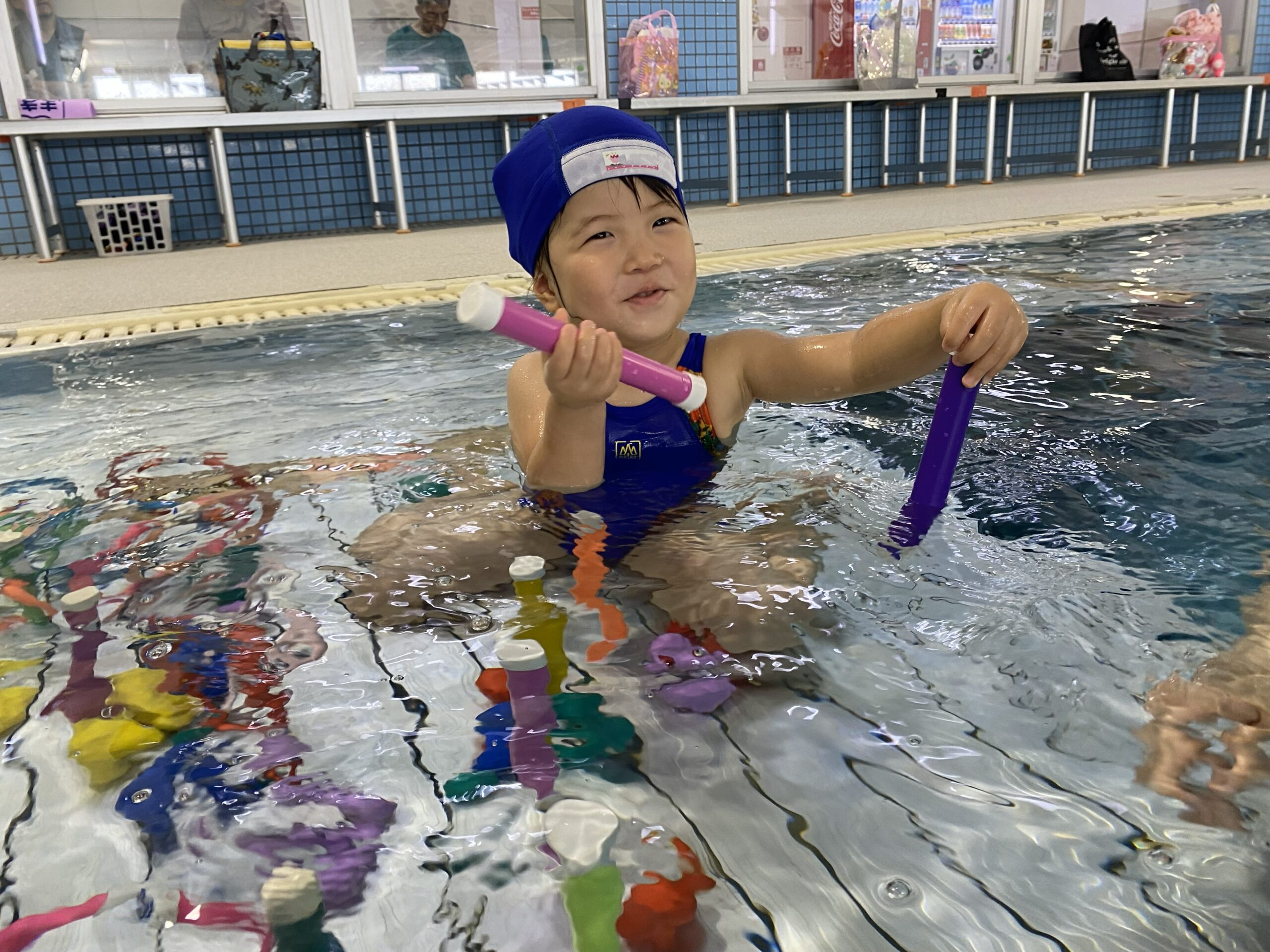 お子様にプールで楽しい経験をしたというイメージを持ってもらうことで、水の中に入るということに対しても楽しいという印象を持ってもらうことができます。