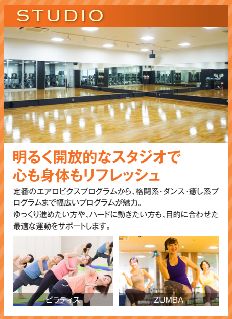 エアロやヨガ、ピラティスやZUMBA、リトモスなど人気のプログラムをはじめ、